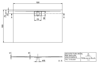 Villeroy & Boch Architectura Metalrim douchebak acryl rechthoekig 150x100x1.5cm alpine wit