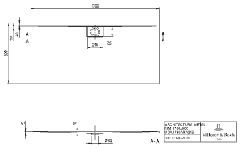 Villeroy & Boch Architectura Metalrim douchebak acryl rechthoekig 170x80x1.5cm alpine wit 1024755