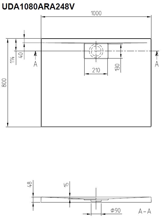 Villeroy & Boch Architectura Metalrim douchebak acryl rechthoekig 100x80x4.8cm alpine wit