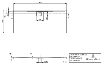Villeroy & Boch Architectura Metalrim douchebak acryl rechthoekig 160x70x4.8cm alpine wit