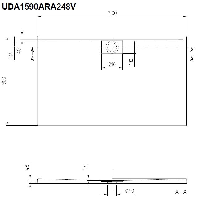 Villeroy & Boch Architectura Metalrim douchebak acryl rechthoekig 150x90x4.8cm alpine wit 1024742