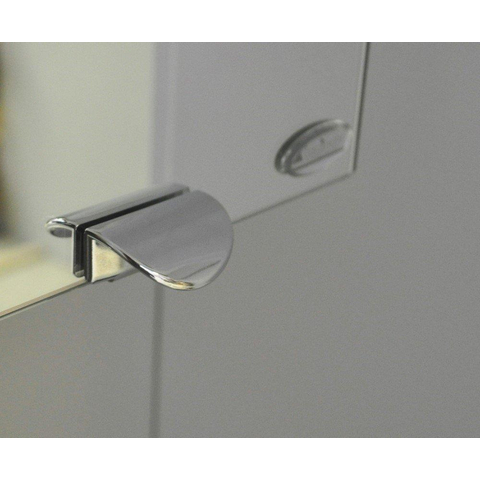 Bestel de spiegeldeurgreep om de deur eenvoudig te bedienen. De greep heeft een chromen afwerking en geschikt voor alle systemen met een spiegeldeur dikte van 4 – 6 mm. Het greepje is eenvoudig op een spiegeldeur te schuiven door middel van de uitsparing aan de achterzijde van het greepje. Dankzij de chromen afwerking past deze perfect bij een moderne of klassieke stijl. Ook is het artikel uitstekend te combineren met andere badkamerstijlen.
