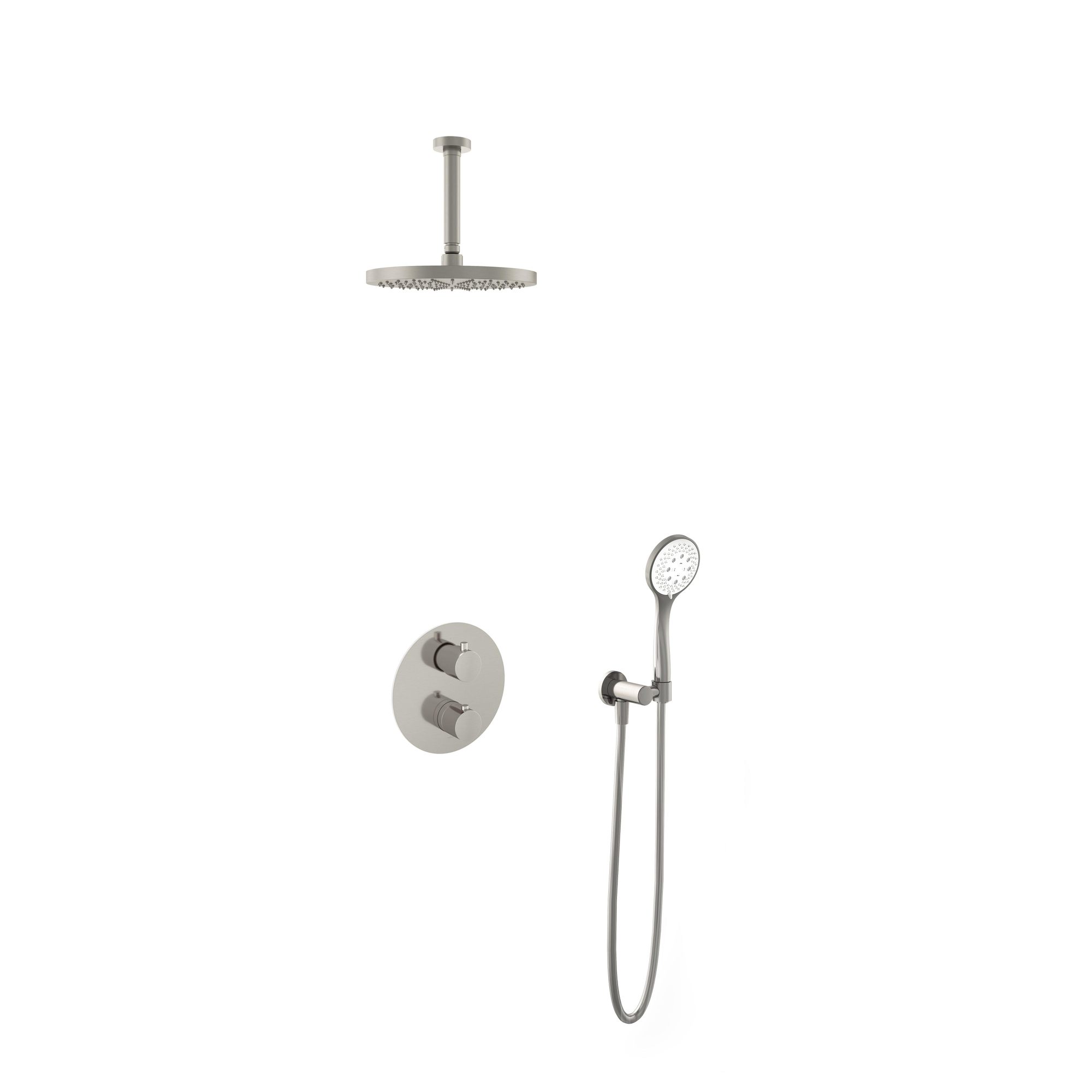 Hotbath Buddy IBS Regendoucheset - 15cm plafondarm - 25cm ronde hoofddouche - 3 standen handdouche - geborsteld nikkel