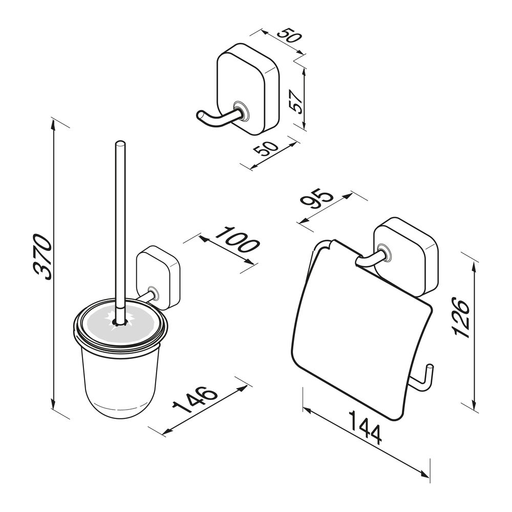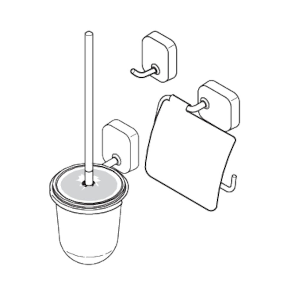 - Set bevat toiletborstel met houder, toiletrolhouder met klep en handdoekhaak