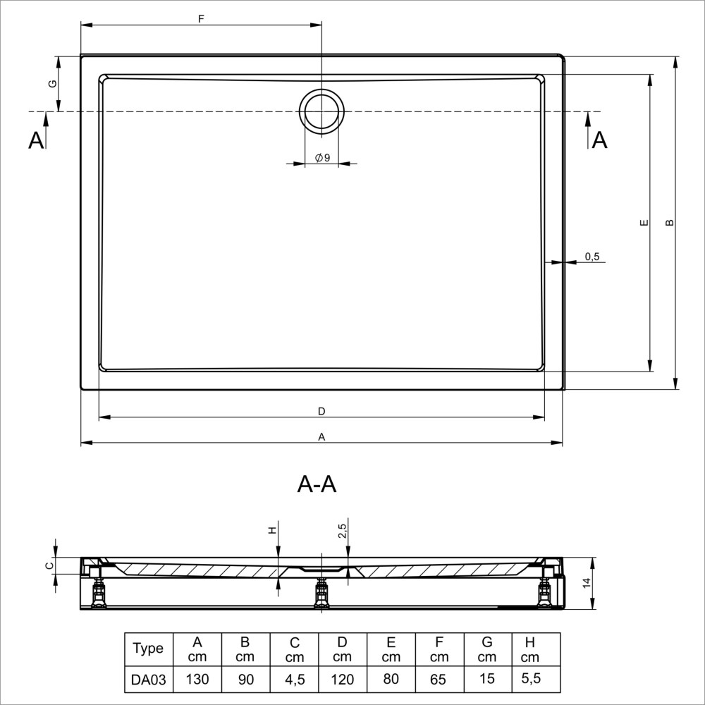 RIHO Davos 263 douchebak 130x90x14cm wit met paneel