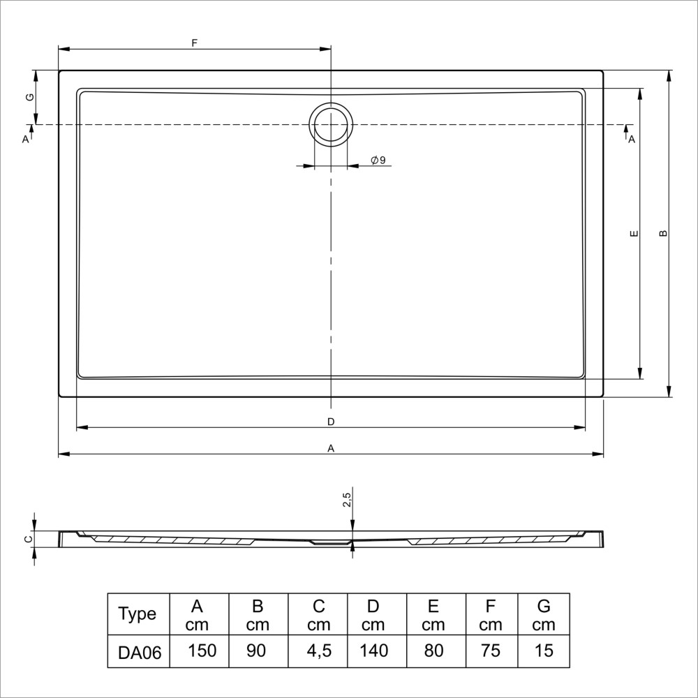 | Plaats afvoer | midden |