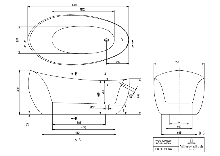 Villeroy & Boch Aveo bad vrijstaand 190x95 randloos met afvoer overloop wit