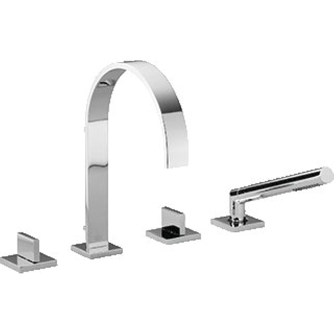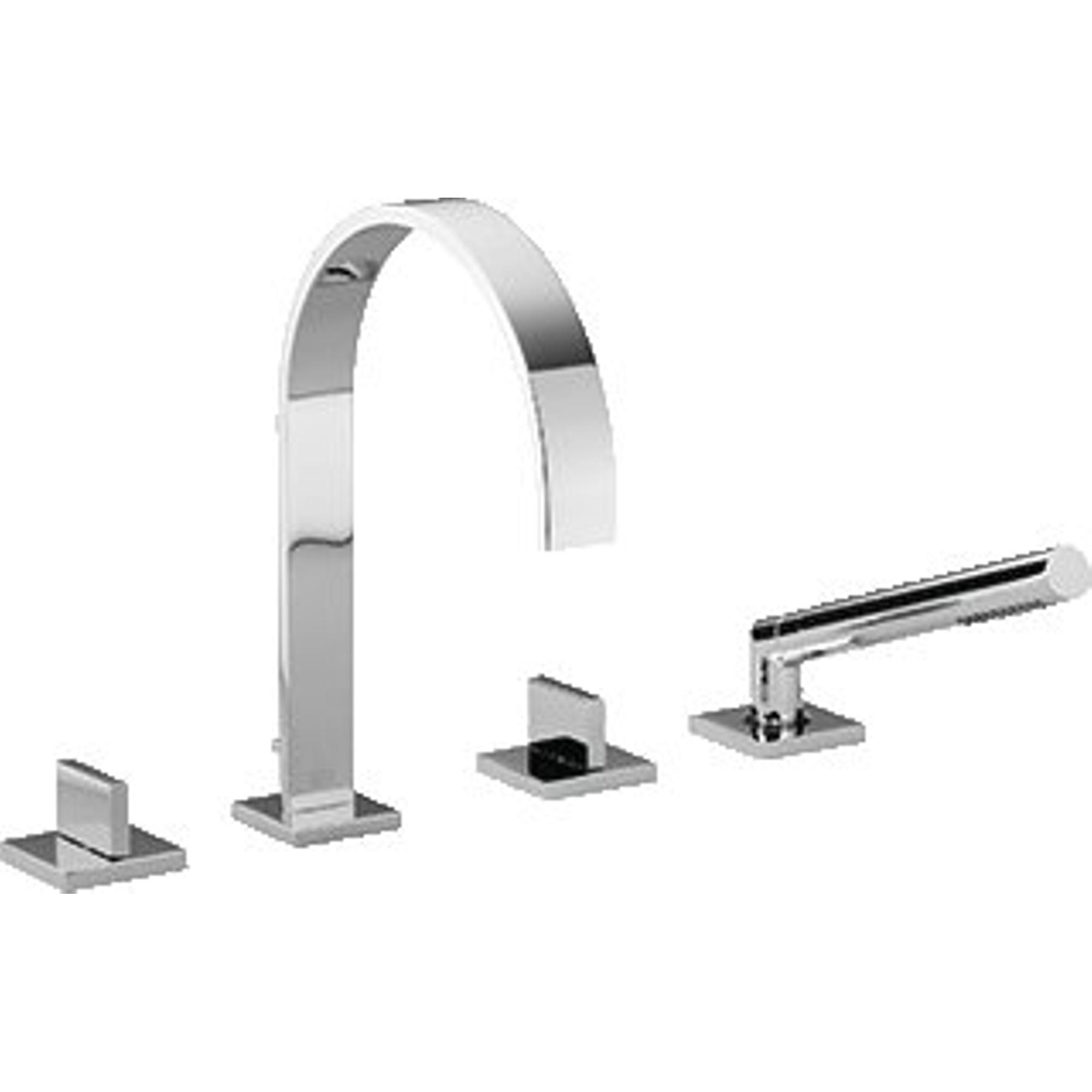 Dornbracht Mem 4 gats badrandkraan met rozetten met sprong 22cm met vaste uitloop met staafhanddouche en doucheslang chroom