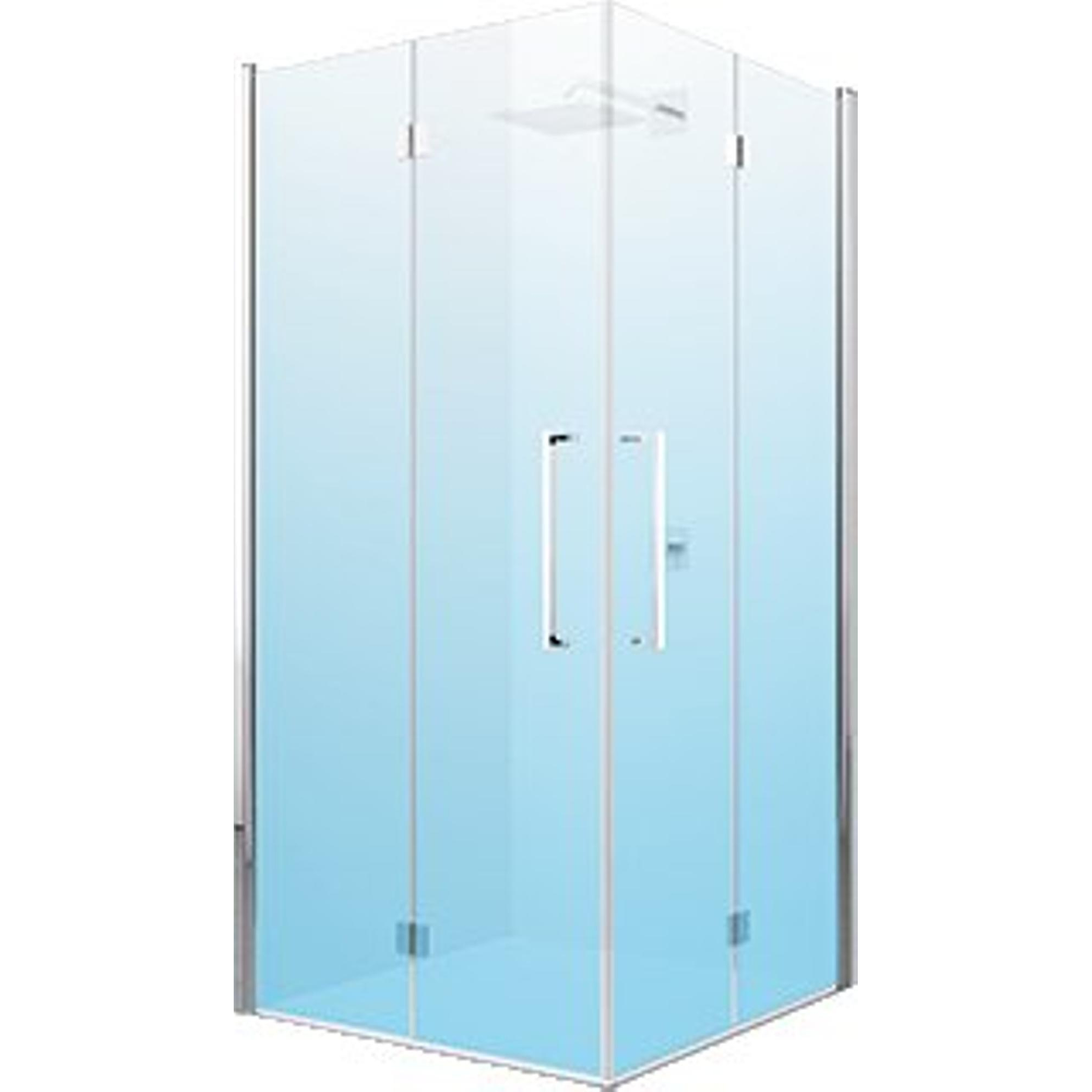 • douchecabine is vierkant met 2 vouwdeuren