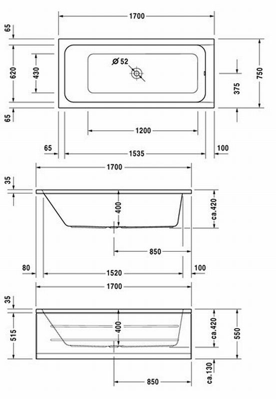 Duravit D-code bad 170x75cm wit