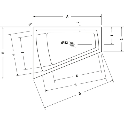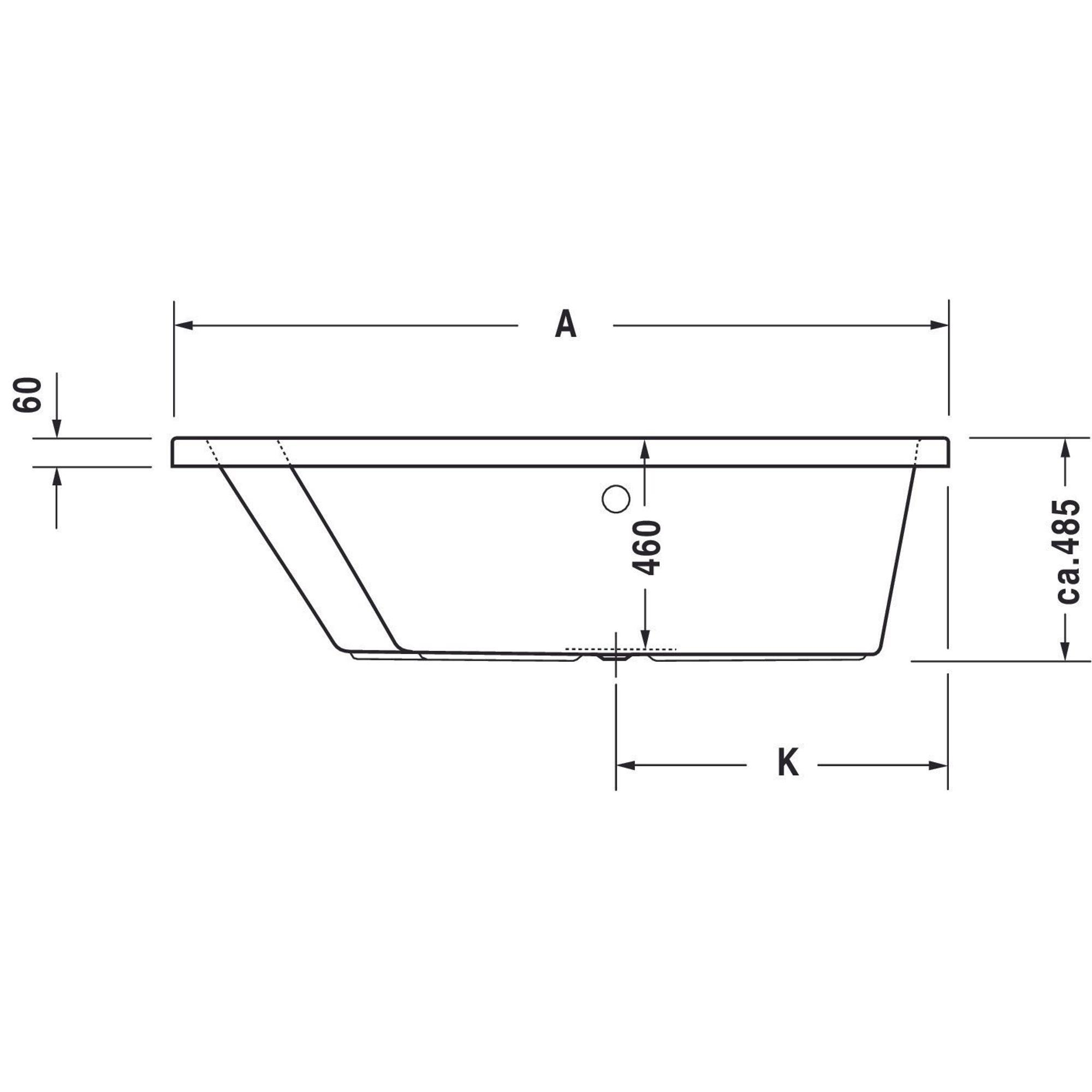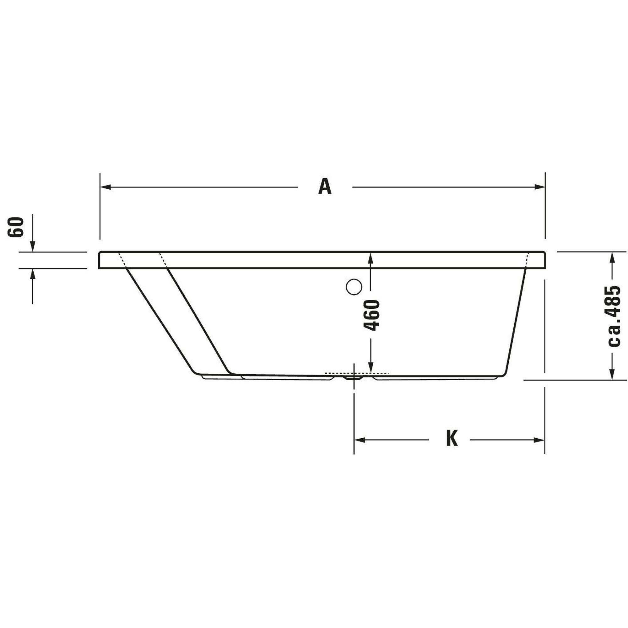 Duravit Paiova bad acryl afgeschuind links 170x130x46cm wit