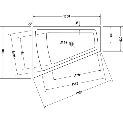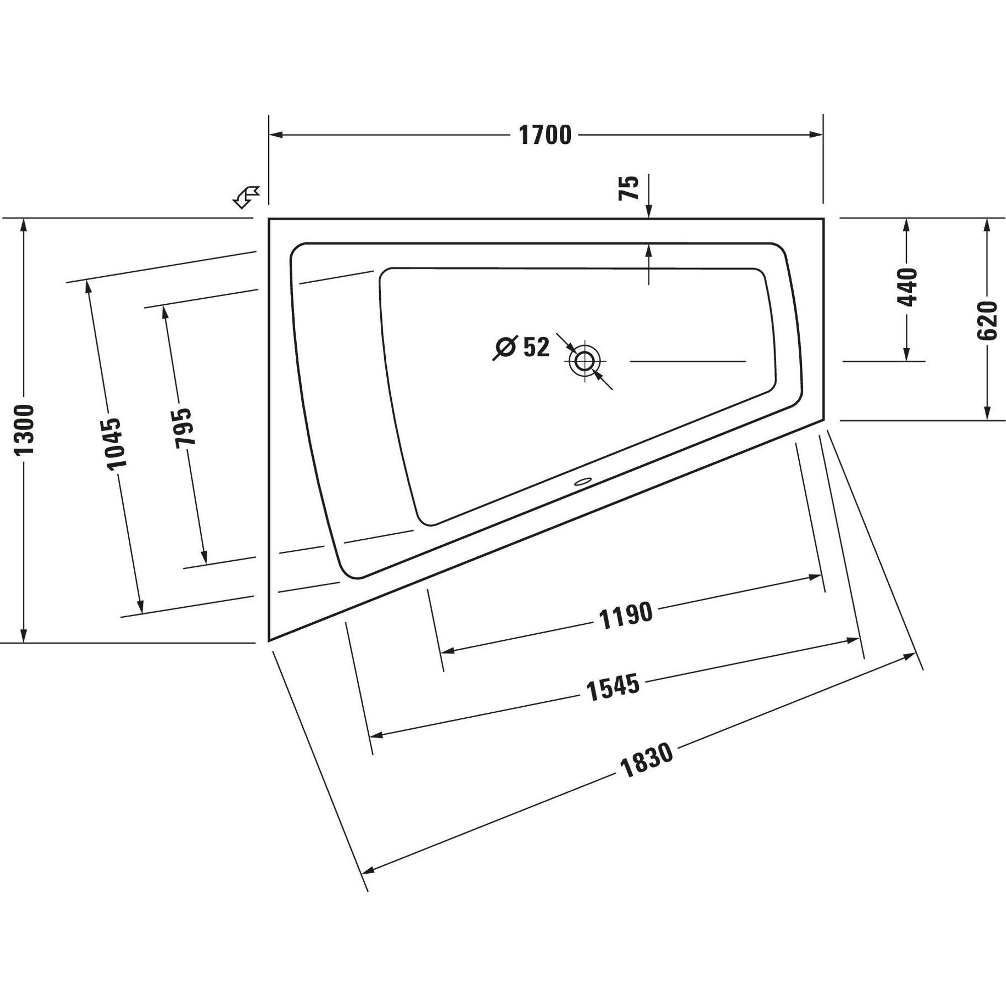 Duravit Paiova bad acryl afgeschuind links 170x130x46cm wit 0297535