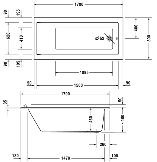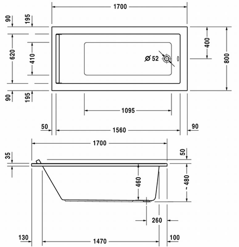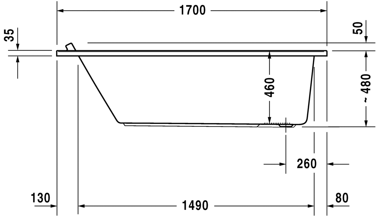 Duravit Starck kunststof inbouwbad acryl rechthoekig 170x80x46cm wit