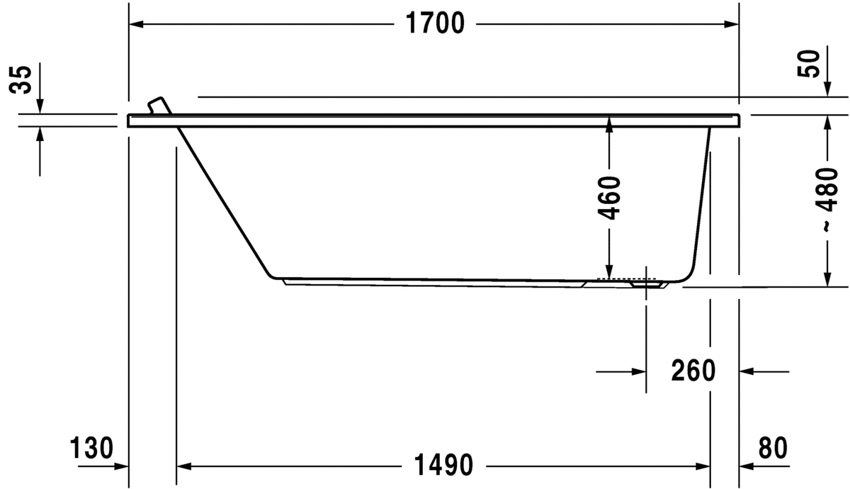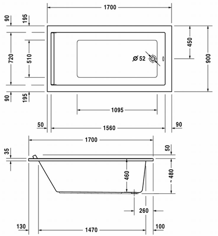 Duravit Starck kunststof inbouwbad acryl rechthoekig 170x90x46cm wit