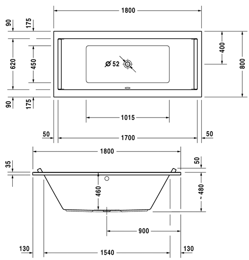 Duravit Starck slimline bad rechthoek 180x80cm duo wit