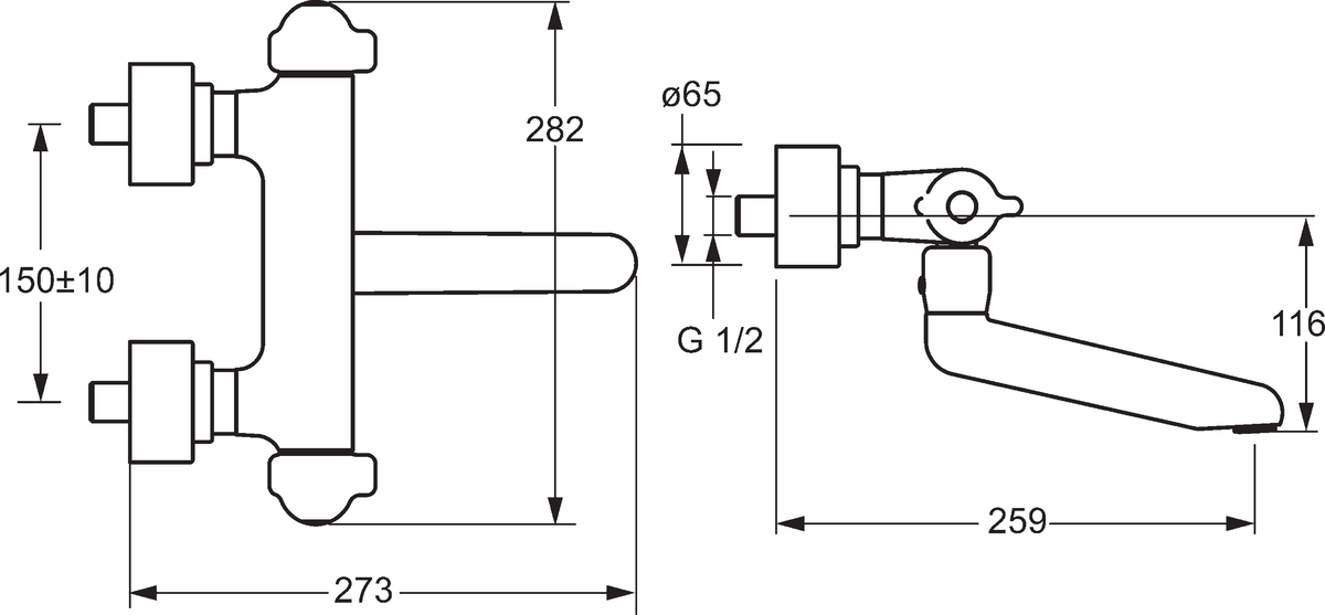 Hansa Hansacare wandkraan thermostatisch met draaibare uitloop 25.9cm met verdekte afsluitbare koppelingen chroom