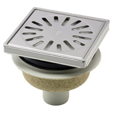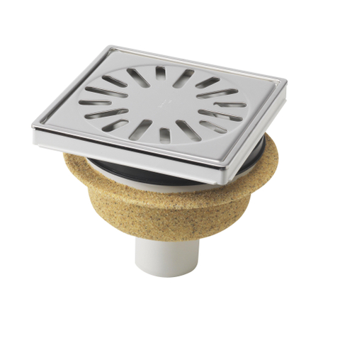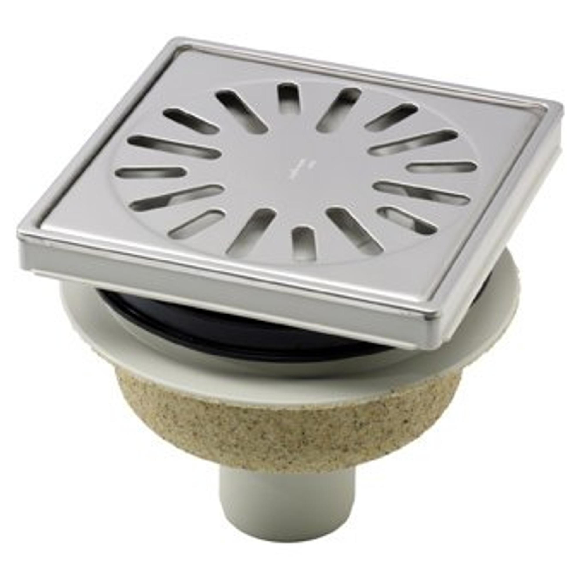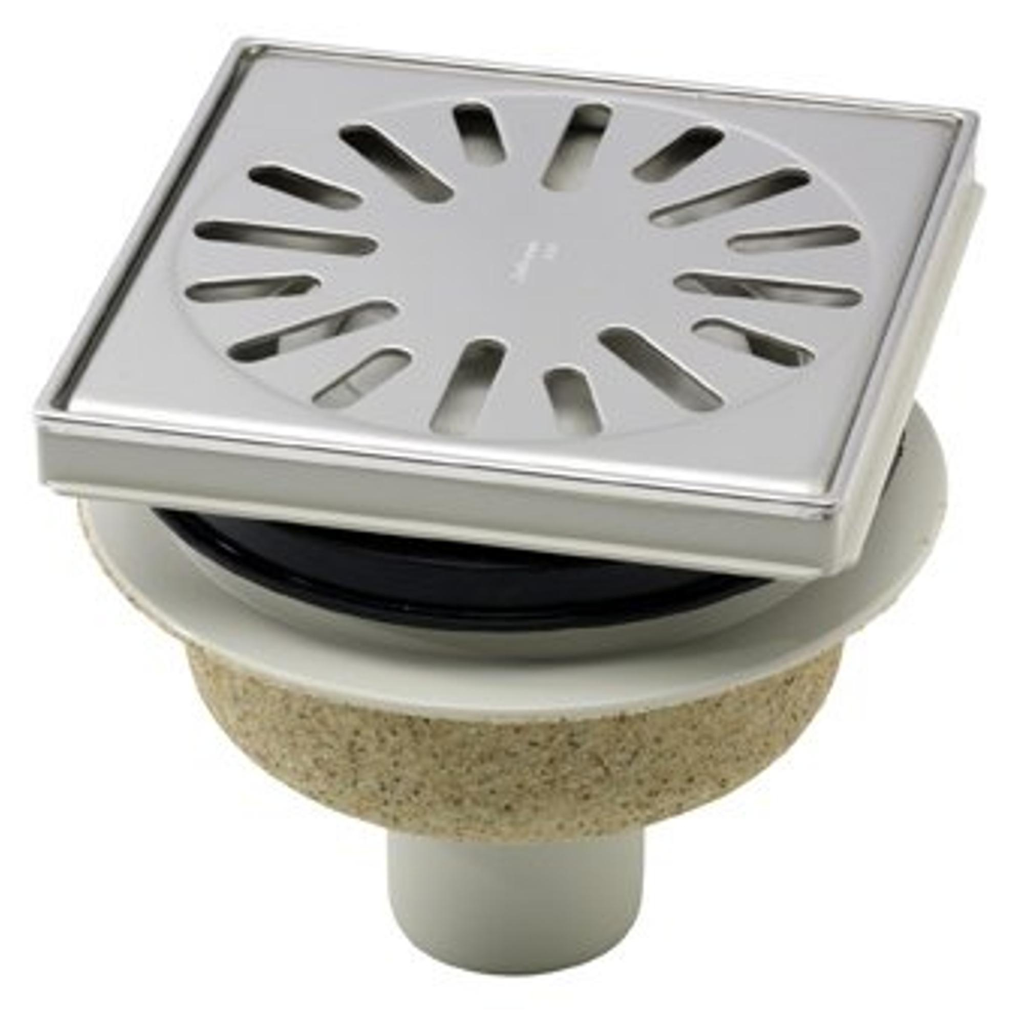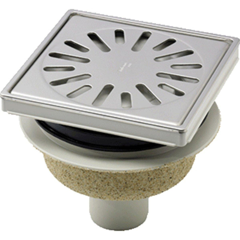 Aquaberg ABS kunststof put bezand met RVS sierrand/rooster onderuitloop 50mm 150x150mm met reukslot 50mm