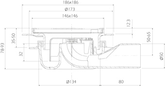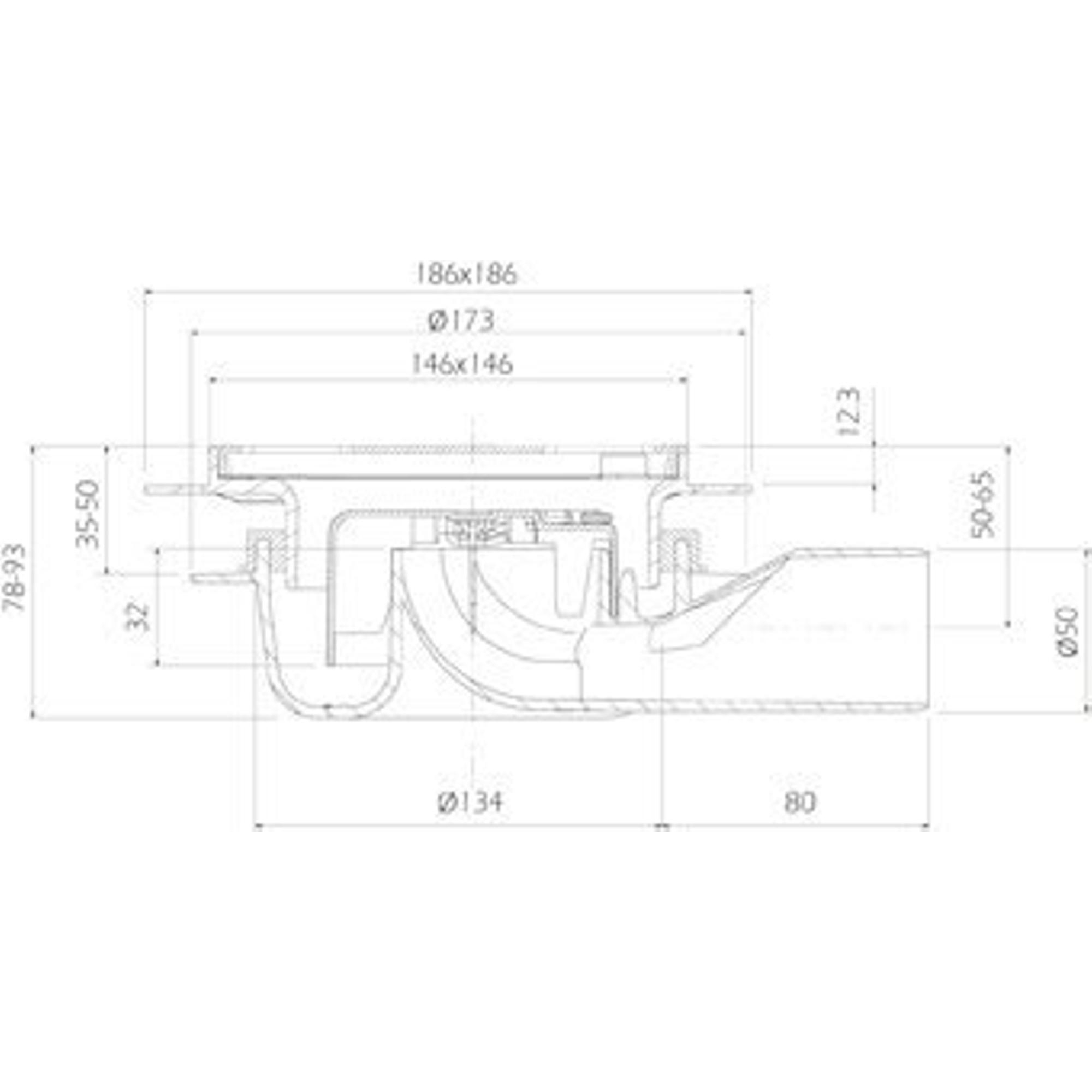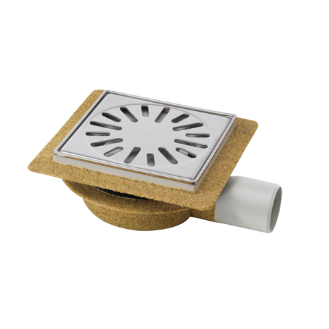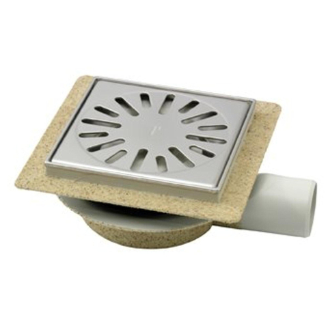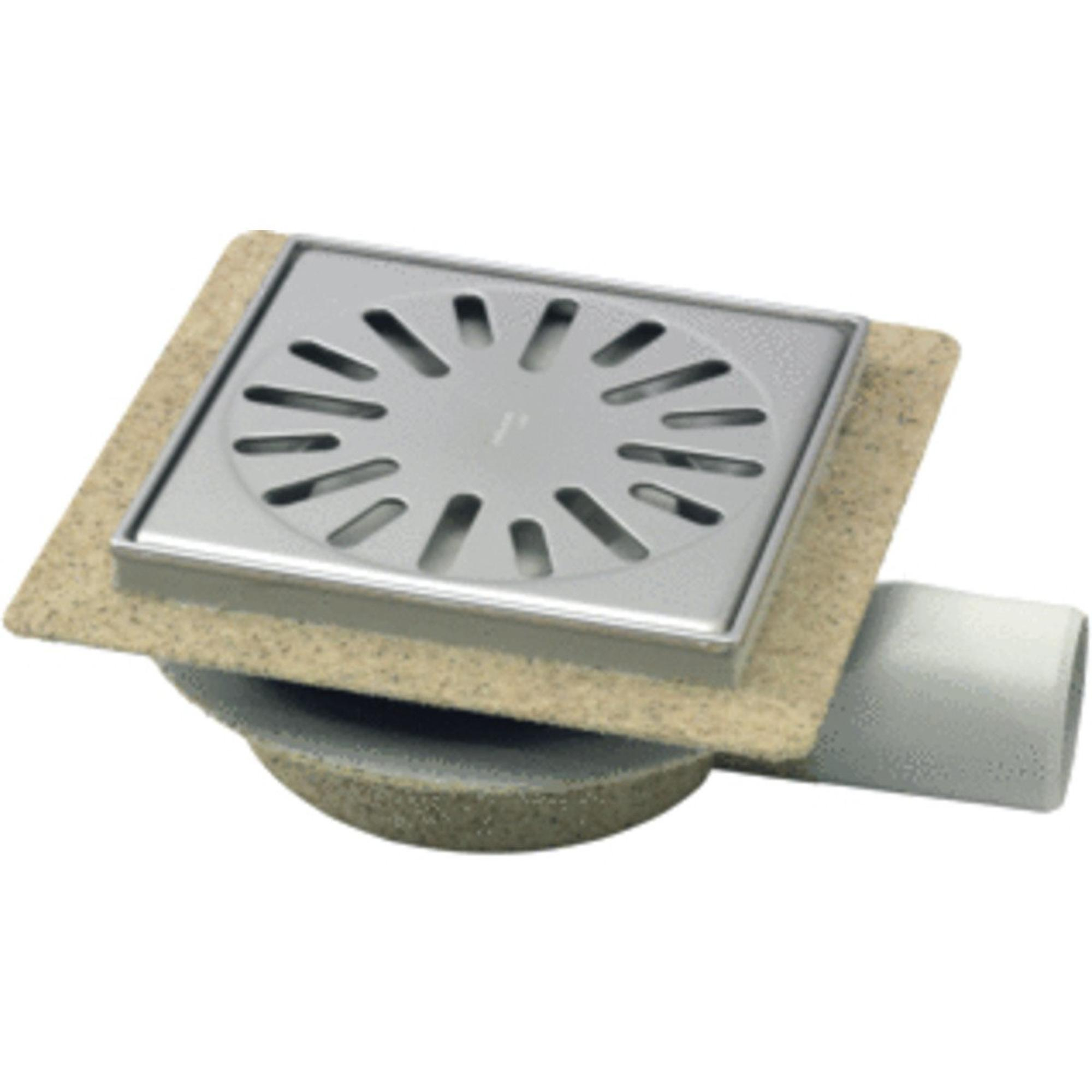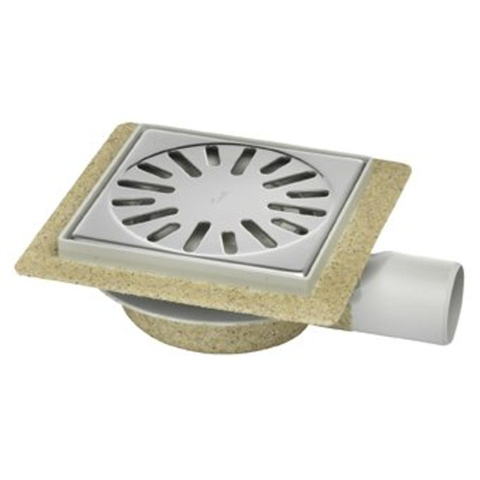 Aquaberg ABS kunst stuks put/opzet stuks met flens bezand met RVS sierrand/rooster zijuitloop 50mm 146x146mm laag model met reukslot 32mm