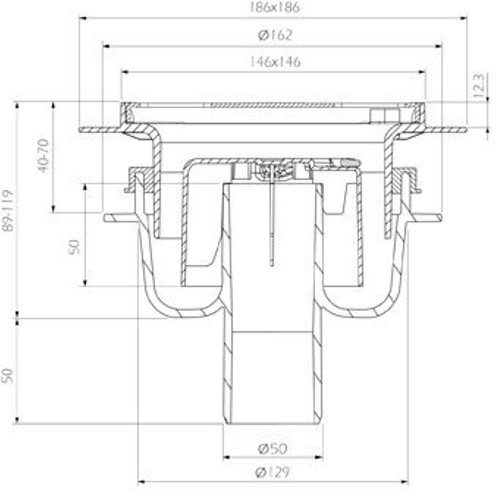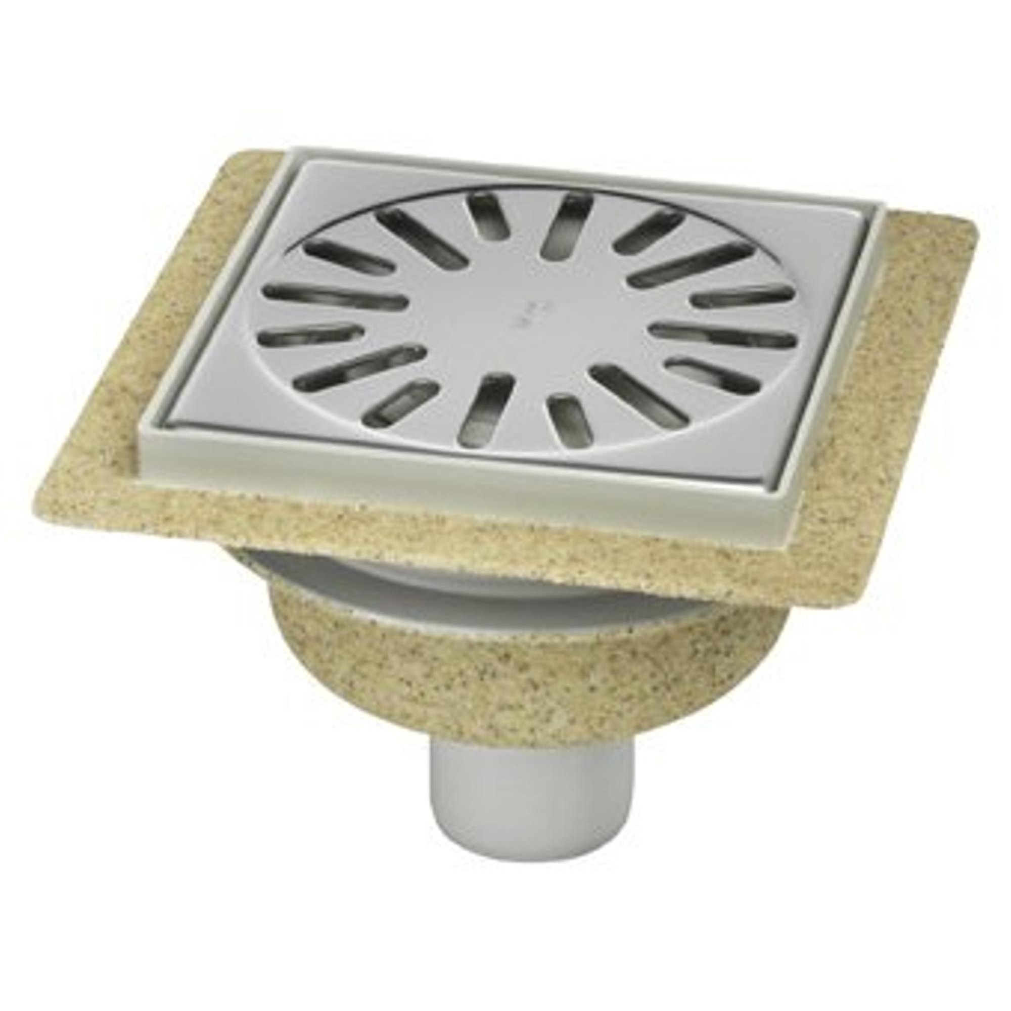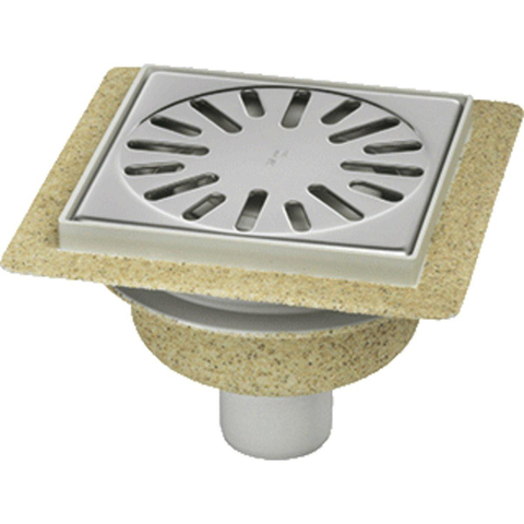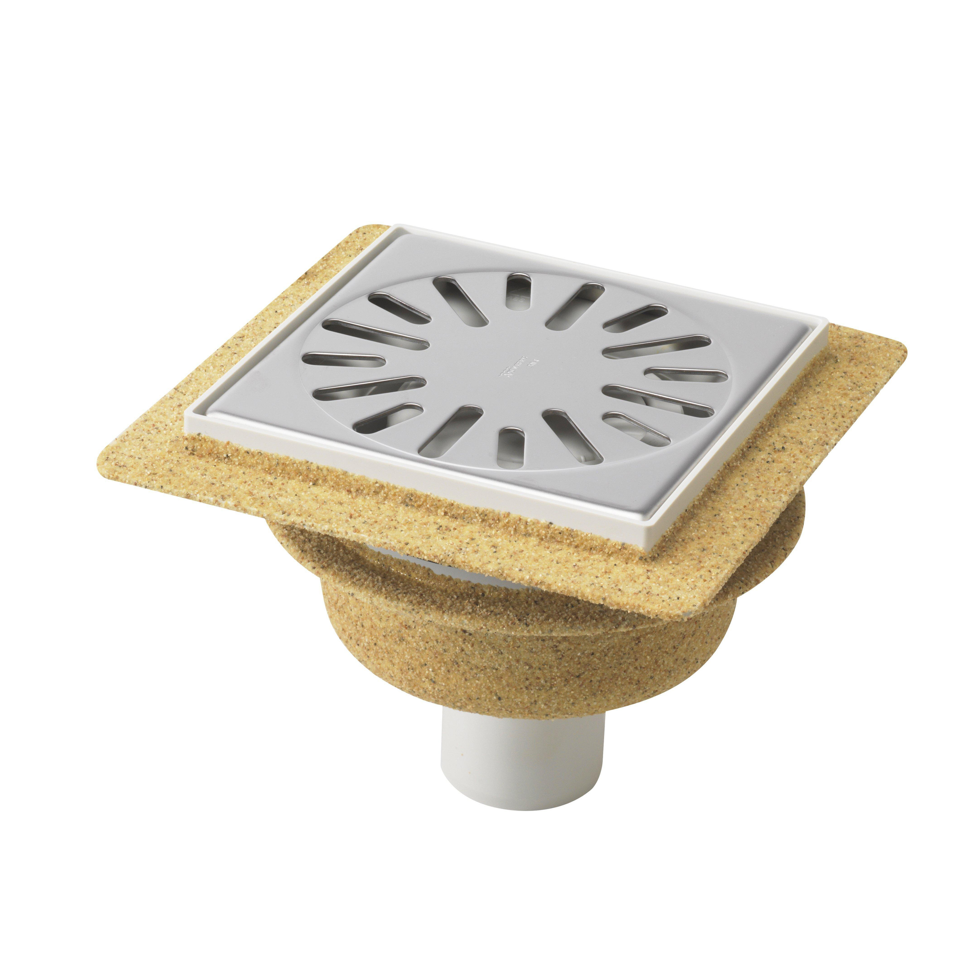Aquaberg ABS kunststof put/opzetstuk met flens bezand met RVS rooster onderuitloop 50mm 146x146mm met reukslot 50mm