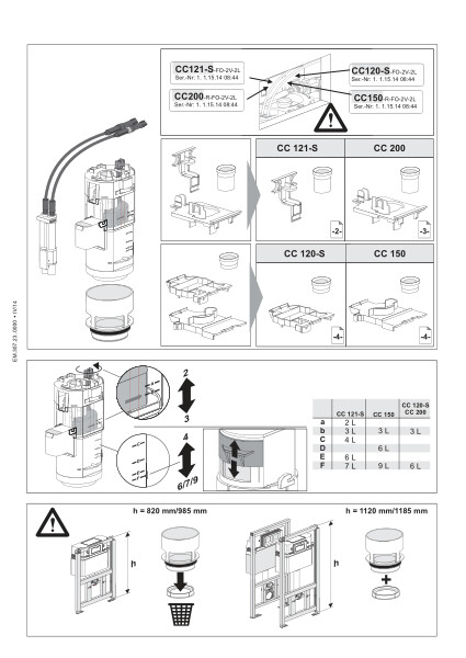 - Afvoergarnituur voor inbouwspoelbakken met 2 kabeltechniek en pneumatiek