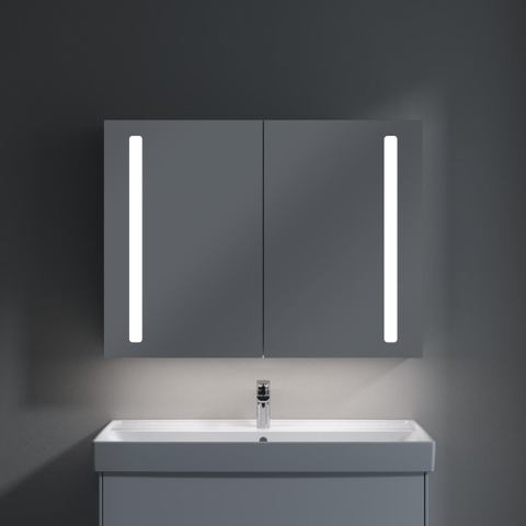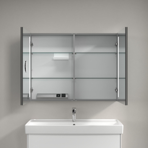 Villeroy & Boch My View spiegelkast met 2 deuren met geïntegreerde LED verlichting verticaal 100x75x17.3cm