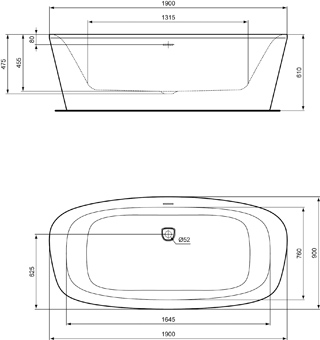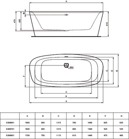 Ideal Standard Dea kunststof vrijstaand bad acryl ovaal 190x90cm met poten en overloop wit