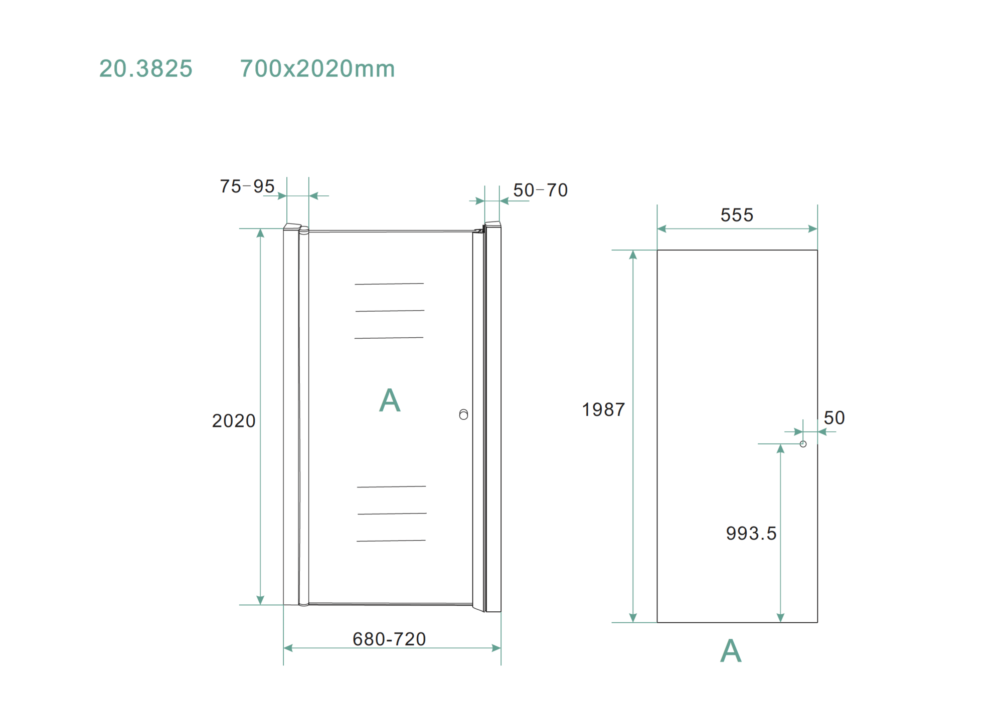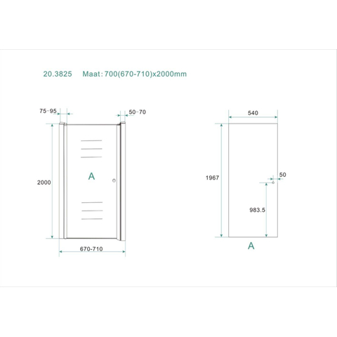 LET OP: Zodra je deze nisdeur combineert met een zijwand komt het aanslagprofiel van 50 tot 70 mm te vervallen.