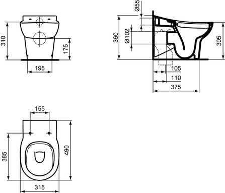 Ideal Standard Contour 21 kinderclosetpot diepspoel staand randloos voor 3 7 jaar 31.5x49cm PK wit