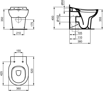 Ideal Standard Contour 21 kinderclosetpot diepspoel staand randloos voor 7-11 jaar 36x52cm PK wit