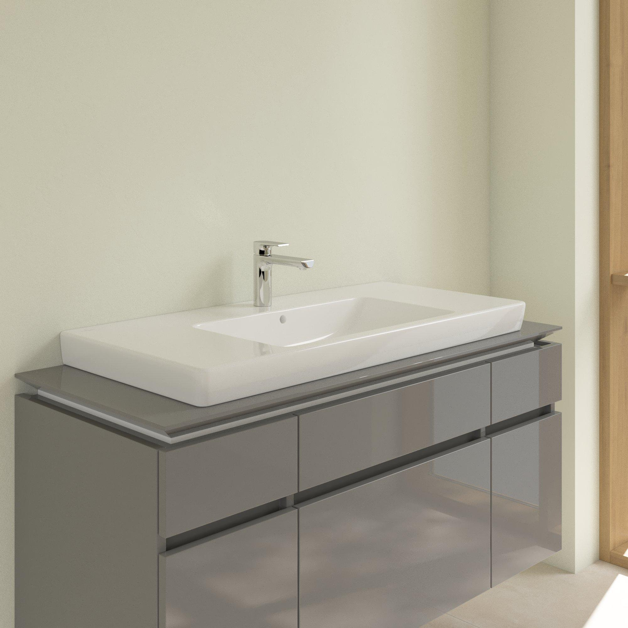 De rechthoekige meubelwastafel van de collectie Subway 2.0 van Villeroy & Boch maakt indruk met de praktische, eenvoudig te reinigen opbergvlakken rondom het bekken en het typerende tijdloze design van de collectie. De rechthoekige vorm onderscheidt zich met chique rondingen in een verder minimalistische look. Het royale bekken is bijzonder praktisch bij het wassen van handen of zelfs het wassen van het haar. De wastafel is gemaakt van hoogwaardig sanitairkeramiek en is uiterst onderhoudsvriendelijk en duurzaam. Het vuilafstotende oppervlak overtuigt tevens met eenvoudige reiniging voor een langdurige zuiverheid.