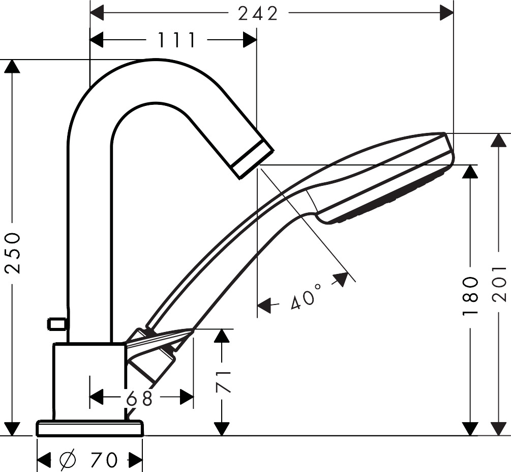 De 3-gats ééngreeps mengkraan Logis met Secuflex van hansgrohe combineert drie voordelen in een mengkraan: De elegant gevormde, glanzend chromen uitloop stuurt het badwater nauwkeurig naar het doel. De gewenste temperatuur en waterhoeveelheid kunnen eenvoudig en nauwkeurig worden ingesteld met behulp van de ergonomisch gevormde handgreep. Dit is ook te danken aan het hoogwaardige, bijzonder duurzame keramische mengsysteem in de kraan. Met de geïntegreerde, 1,10 m uittrekbare doucheslang kan de douche heel flexibel worden gebruikt.