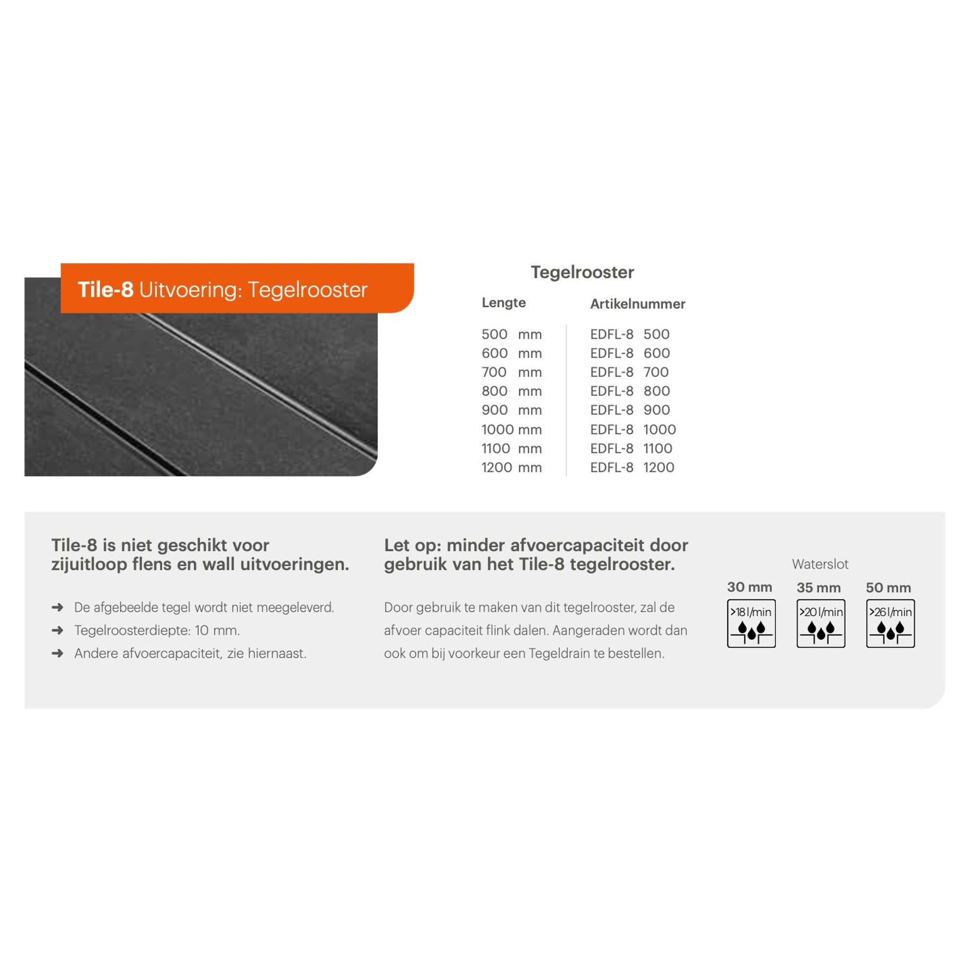 Easy Drain Multi tegelrooster RVS voor douchegoot 8x60cm