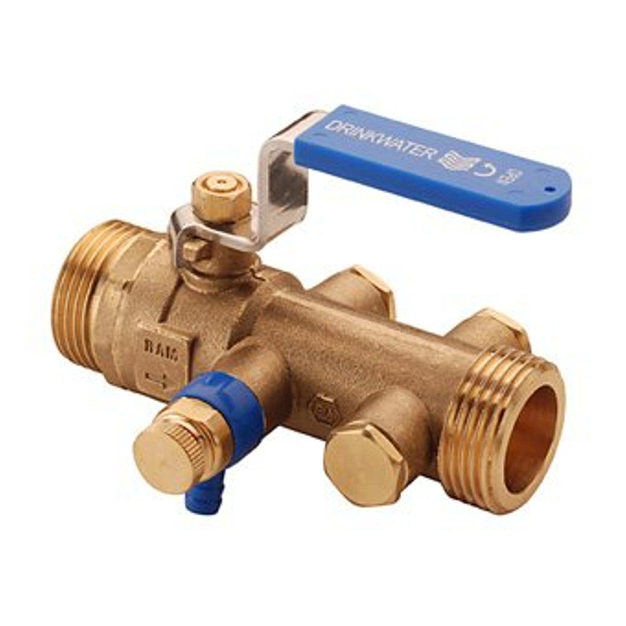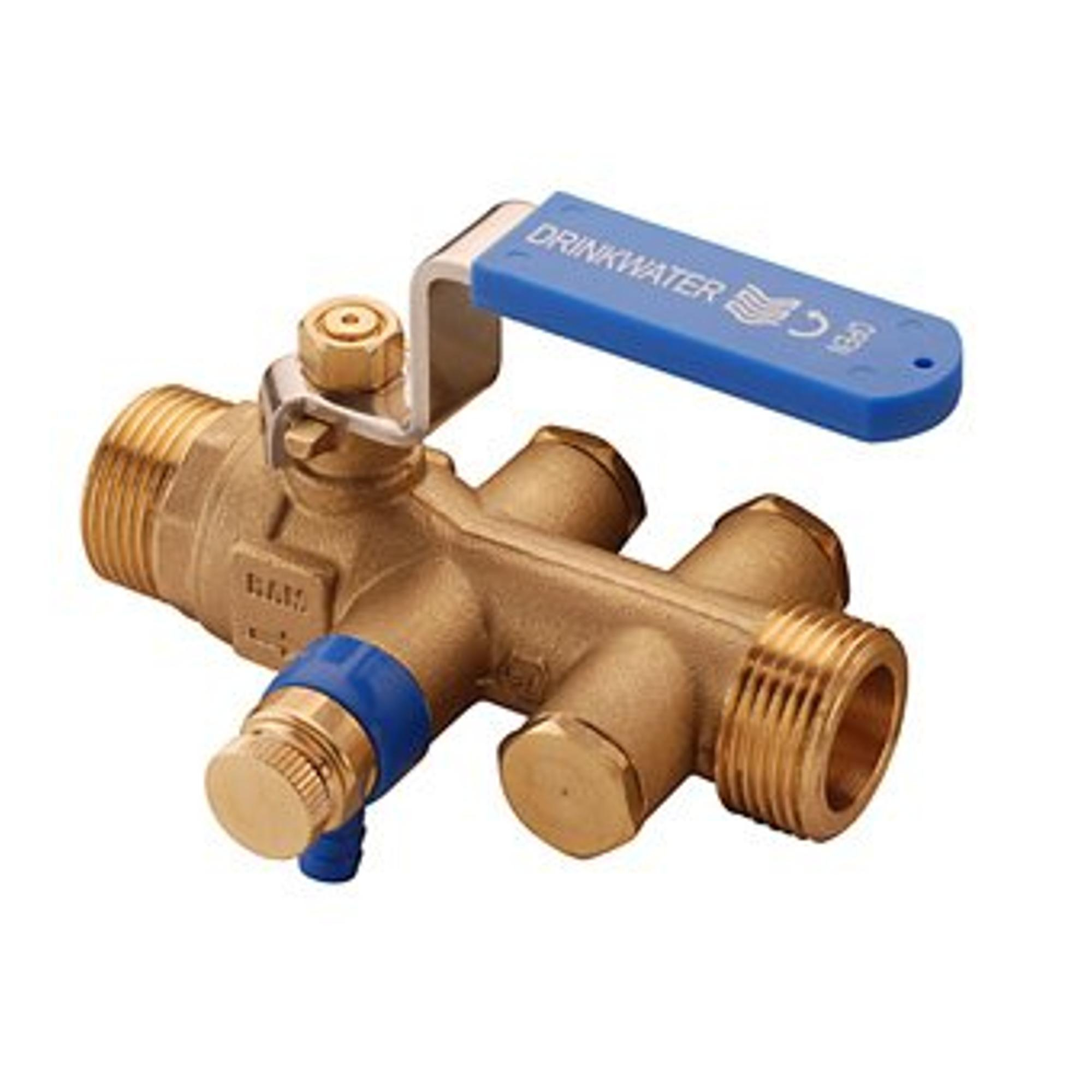 Raminex TBE EA RAM terugstroombeveiligingseenheid vlakdichtend 1 x1 bu 111mm messing kiwa hendel blauw