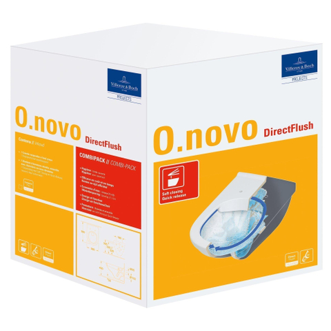 Design voor een verrassend lage prijs: het O.novo Combi-Pack, bestaande uit een wandhangend toilet en een toiletzitting van Villeroy & Boch. Het toilet combineert klassieke vormen met heldere lijnen en past naadloos in elke badkamersfeer. De diepspoeler minimaliseert onaangename geurtjes en de open spoelrand geeft onzuiverheden en kalkaanslag geen kans om zich in het toilet vast te hechten. Een ander voordeel: het waterbesparende verbruik. Dankzij het innovatieve spoelsysteem kan er worden gekozen tussen slechts 3 liter voor de kleine en 4,5 liter voor de grote spoeling. De bijpassende toiletzitting overtuigt met de stille automatische sluitfunctie en kan met behulp van speciale scharnieren eenvoudig worden verwijderd voor reiniging.
