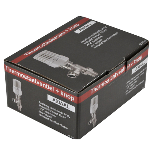 inclusief thermostaatknop en knelsetje 1/2"x15mm. Verpakt in full-color doosje , de kraan heeft een beschermkapje, waarmee deze afgesloten kan worden.