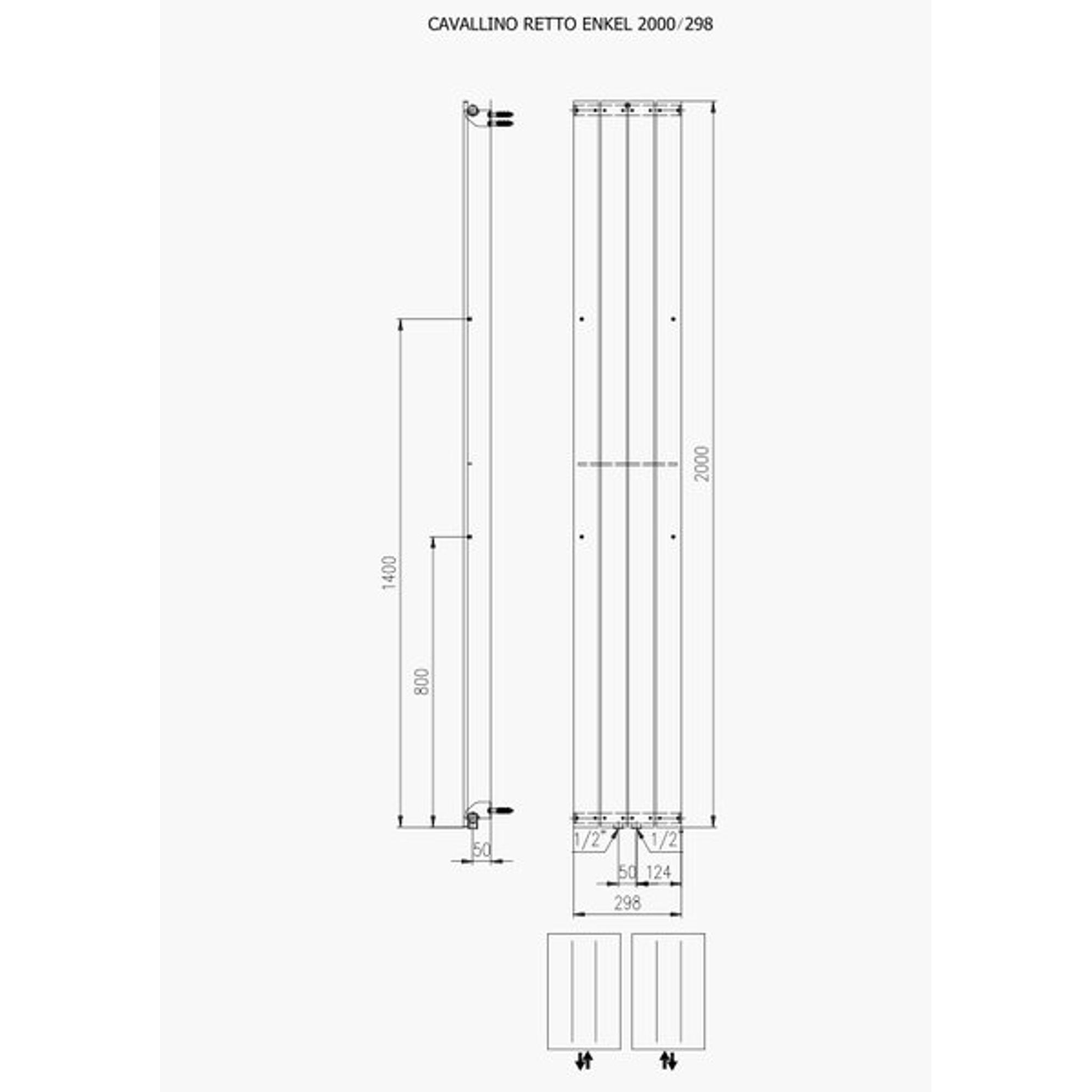 Plieger Cavallino Retto designradiator verticaal enkel middenaansluiting 2000x298mm 666W mat wit
