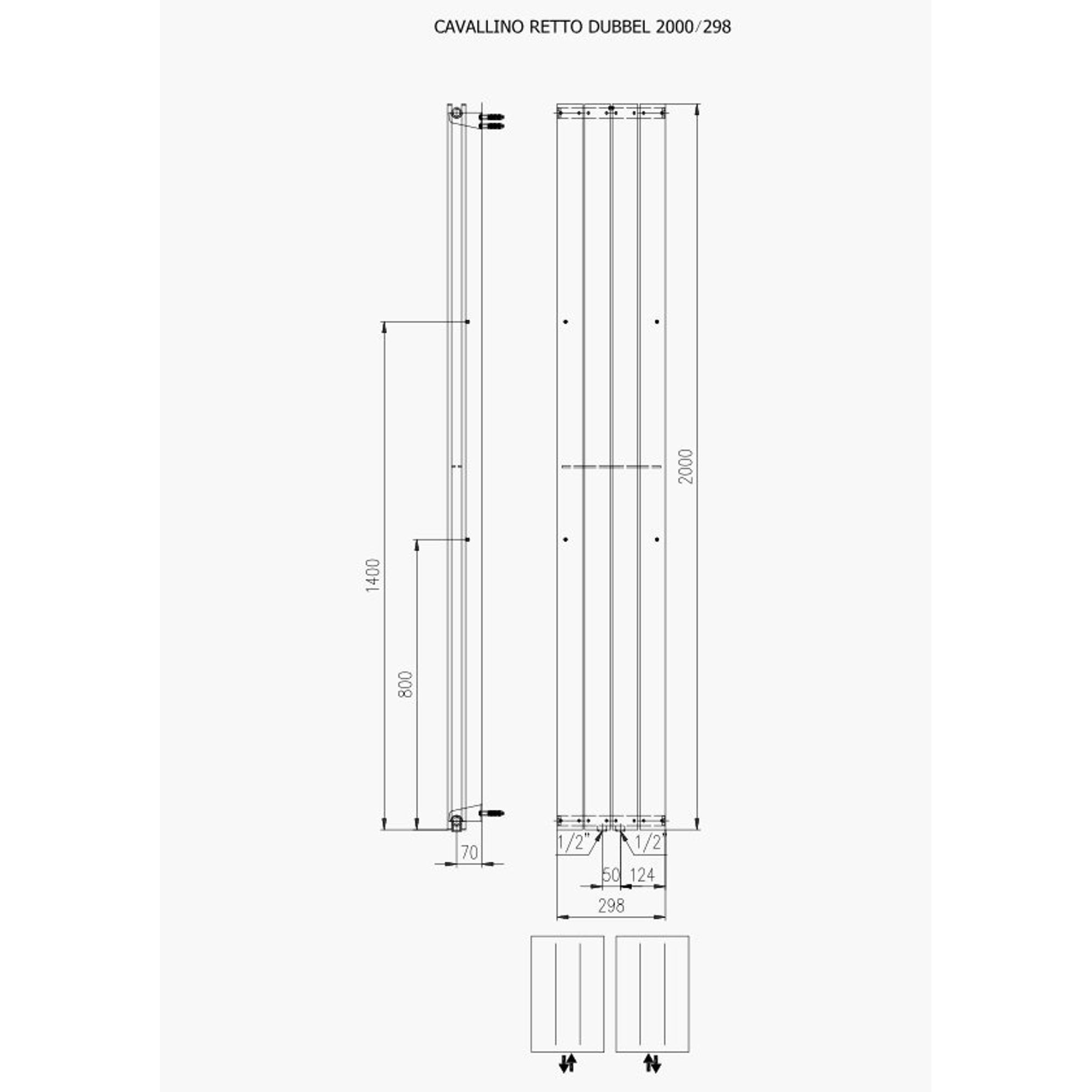Plieger Cavallino Retto designradiator verticaal dubbel middenaansluiting 2000x298mm 905W wit