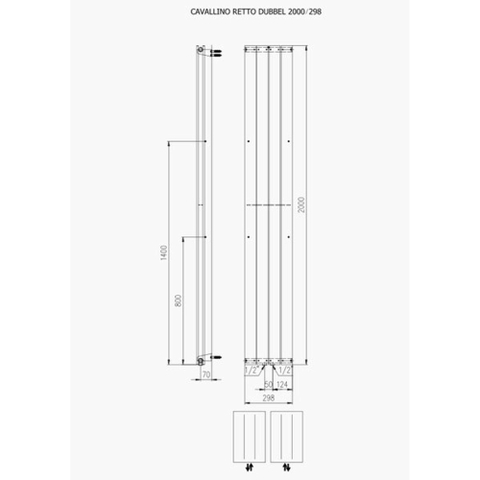 Plieger Cavallino Retto designradiator verticaal dubbel middenaansluiting 2000x298mm 905W donkergrijs structuur