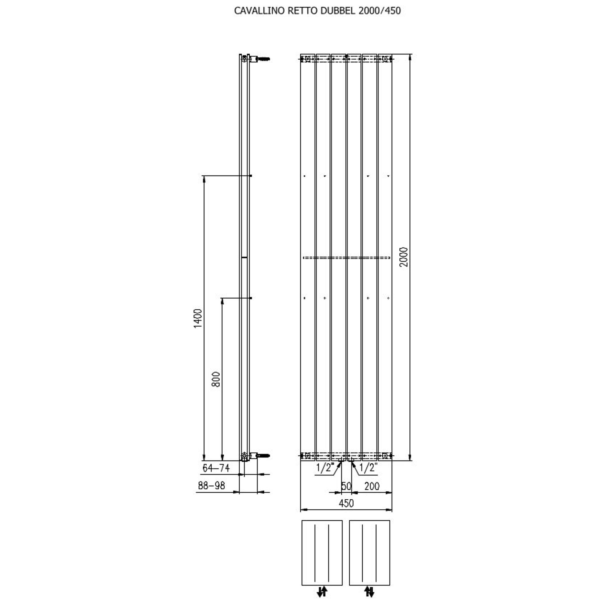 Plieger Cavallino Retto designradiator verticaal dubbel middenaansluiting 2000x450mm 1287W wit