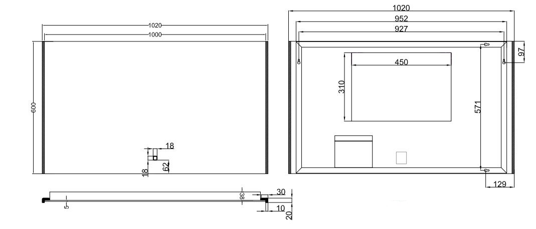 Wiesbaden Duo spiegel rechthoek met LED 102 x 60 cm