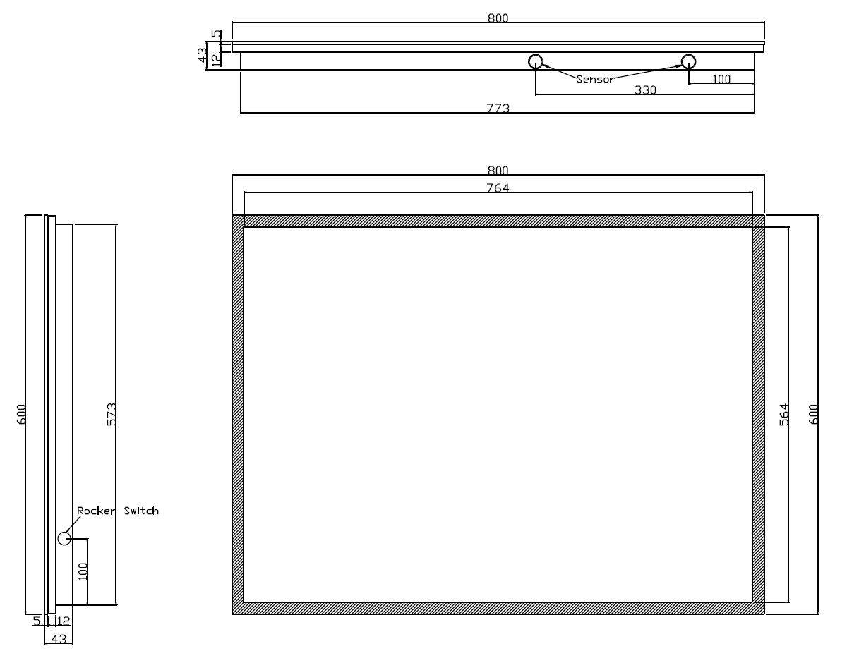 Wiesbaden Quatro spiegel rechthoek met LED, dimbaar en spiegelverwarming 80 x 60 cm