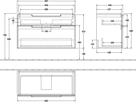 Villeroy & Boch Subway 2.0 wastafelonderkast 98.7x59x44.9cm Wit mat