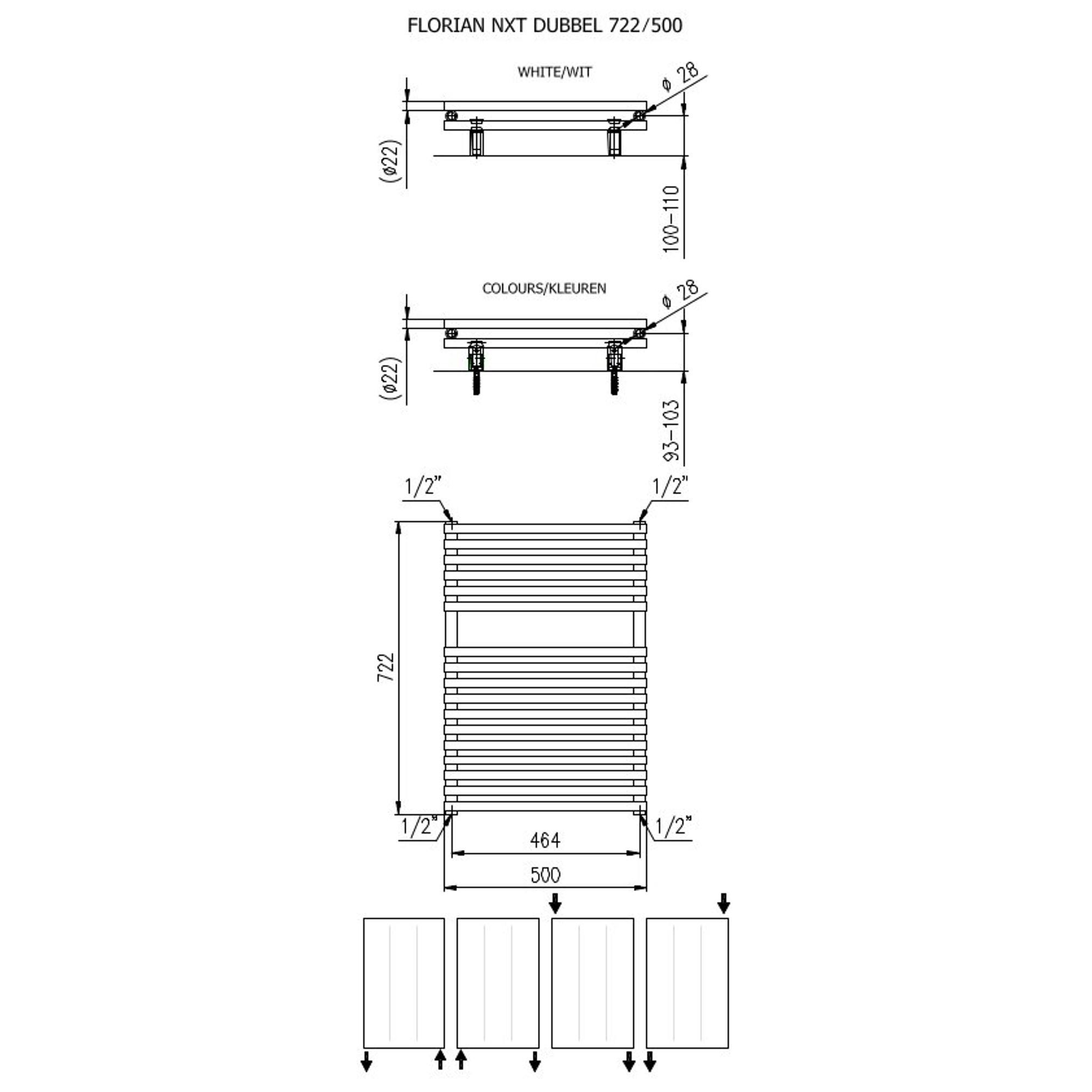 Plieger Florian Nxt designradiator dubbel horizontaal 722x500mm 505W zandsteen