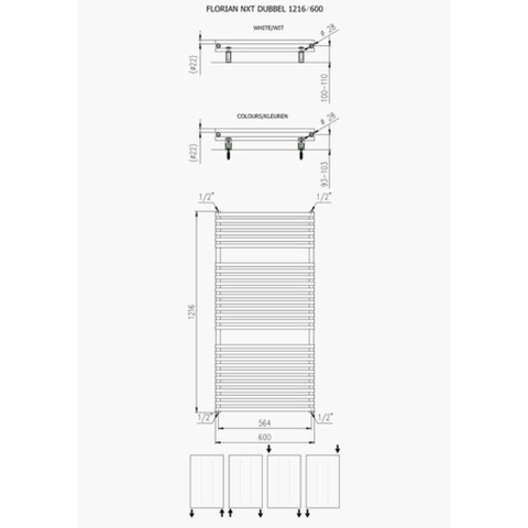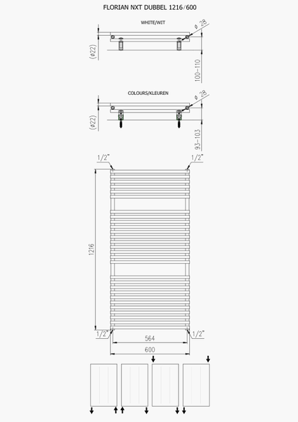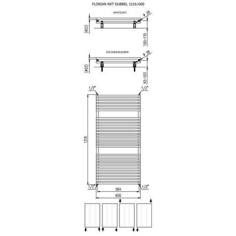 Plieger Florian Nxt designradiator dubbel horizontaal 1216x600mm 980W mat wit