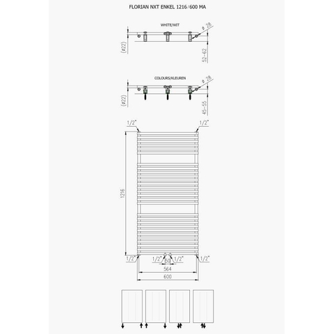 Klassieke alleskunner. De Florian NXT is een populaire allemansvriend. Verkrijgbaar in een enkele en dubbele variant, verschillende afmetingen en 12 kleuren. En met bijpassende handdoekbeugels, -ringen of -haken. Er is ook een verwarmingselement waarmee je de NXT kunt gebruiken als elektrische radiator.