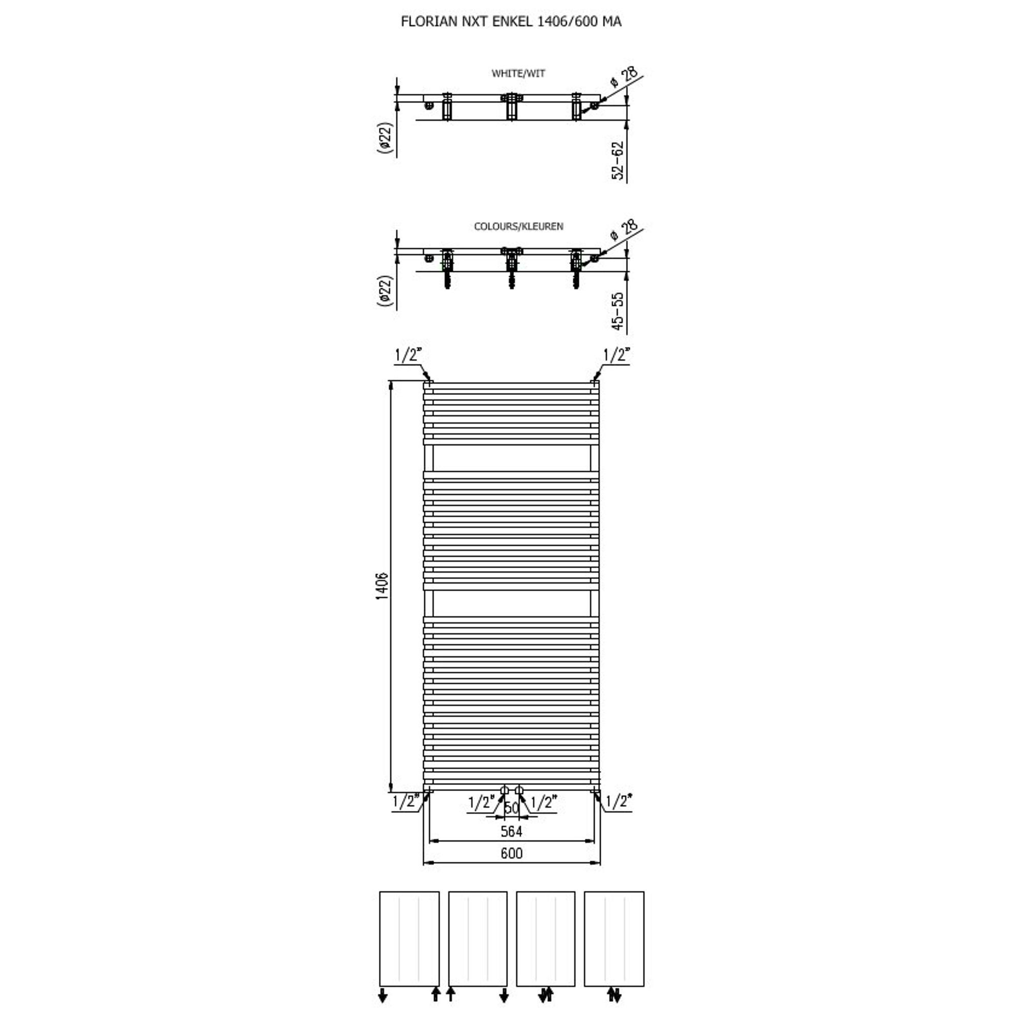 Klassieke alleskunner. De Florian NXT is een populaire allemansvriend. Verkrijgbaar in een enkele en dubbele variant, verschillende afmetingen en 12 kleuren. En met bijpassende handdoekbeugels, -ringen of -haken. Er is ook een verwarmingselement waarmee je de NXT kunt gebruiken als elektrische radiator.