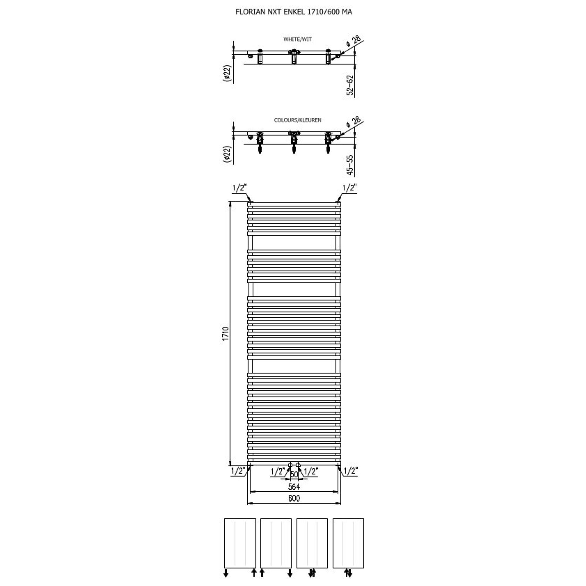 Klassieke alleskunner. De Florian NXT is een populaire allemansvriend. Verkrijgbaar in een enkele en dubbele variant, verschillende afmetingen en 12 kleuren. En met bijpassende handdoekbeugels, -ringen of -haken. Er is ook een verwarmingselement waarmee je de NXT kunt gebruiken als elektrische radiator.
