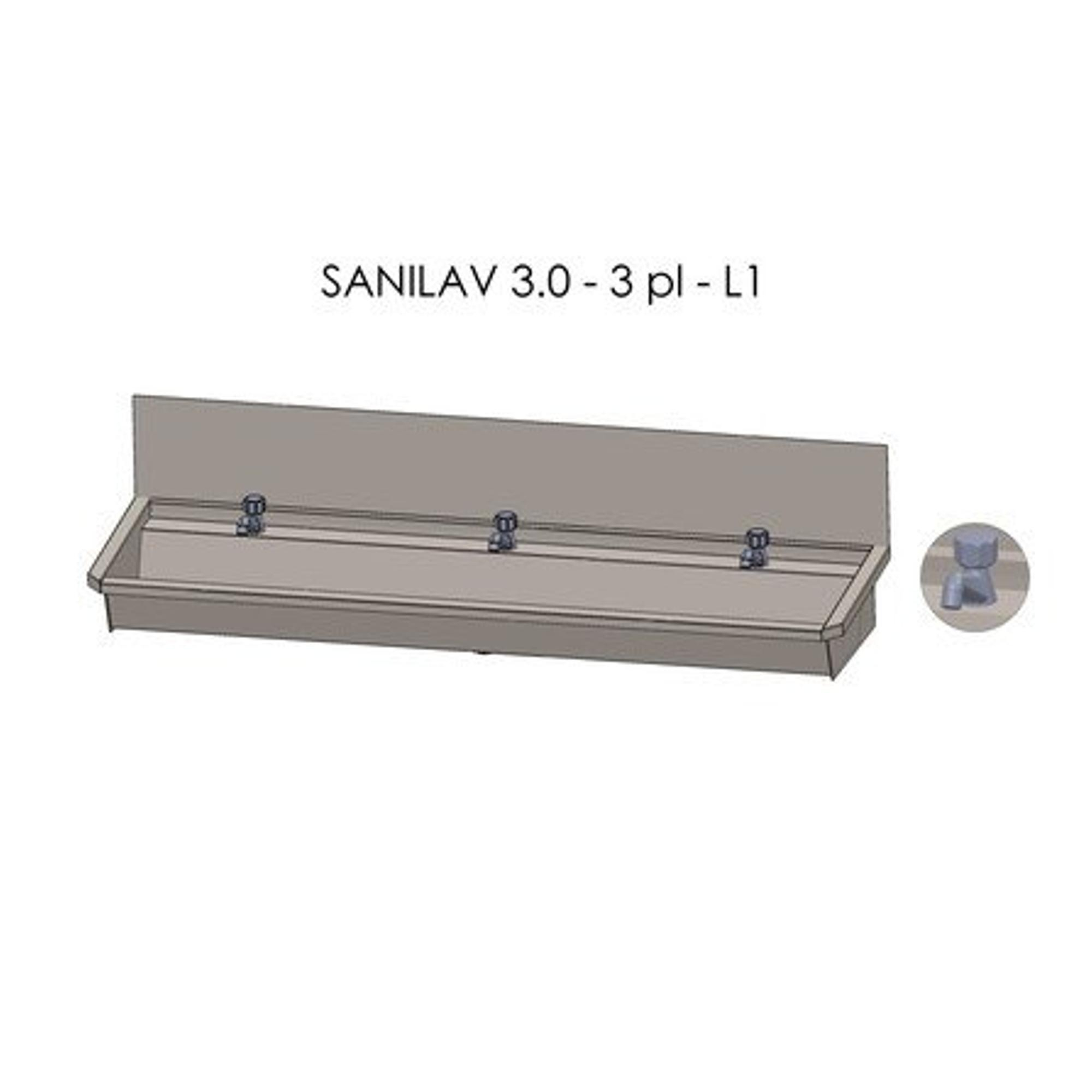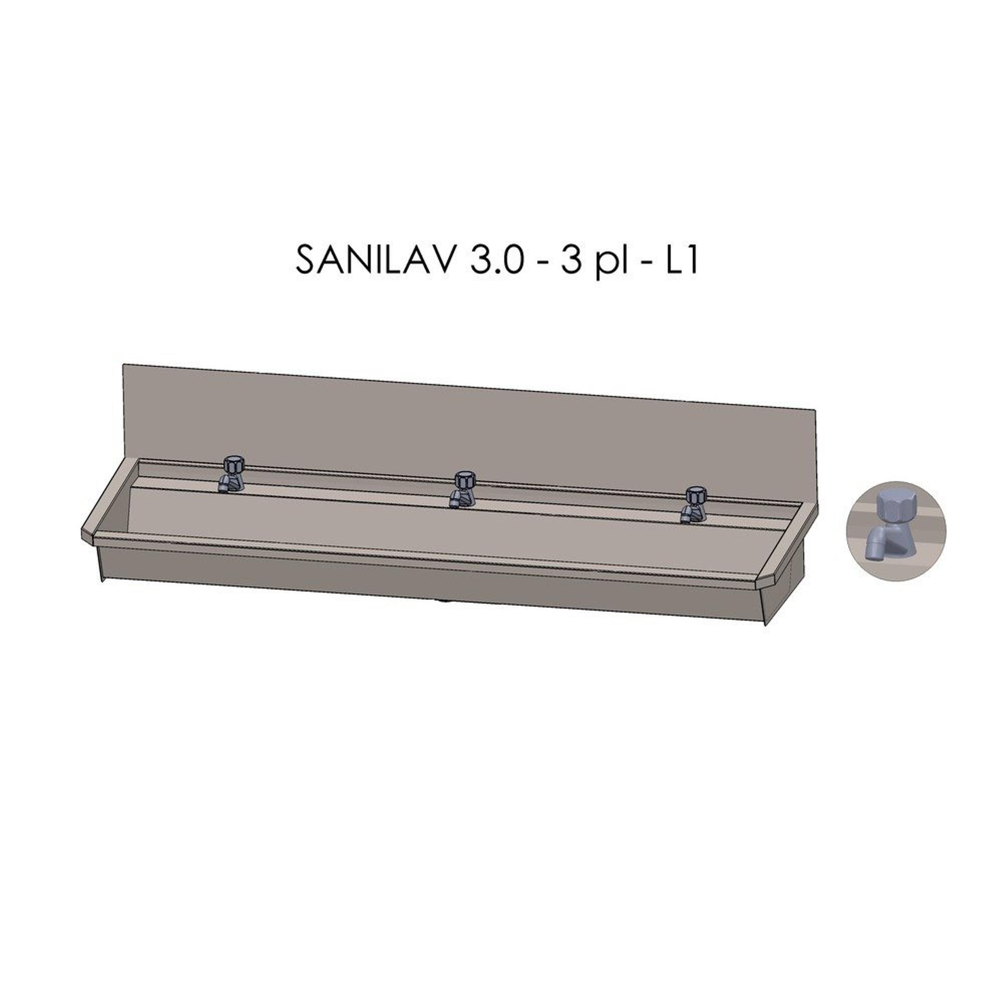 Intersan Sanilav wasgoot met spatbord 180cm met 3 kranen inox 304