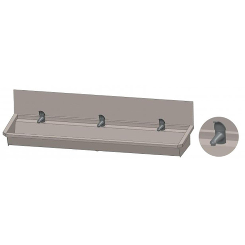 Intersan Sanilav wasgoot met spatbord 180cm met 3 1 greeps kranen inox 304 GA32430