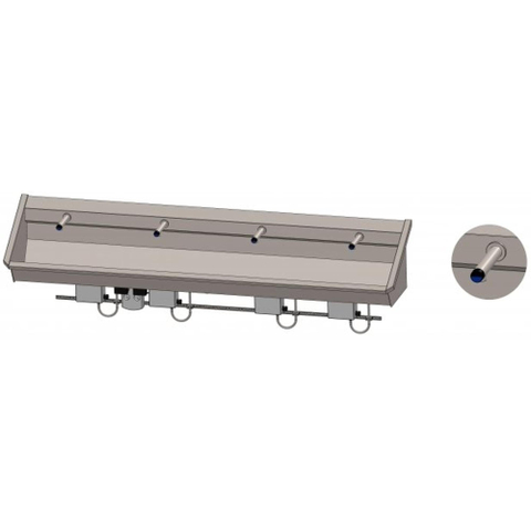 Intersan Sanilav wasgoot 240cm met 4 electronische kranen inox 304 104M9 GA46320
